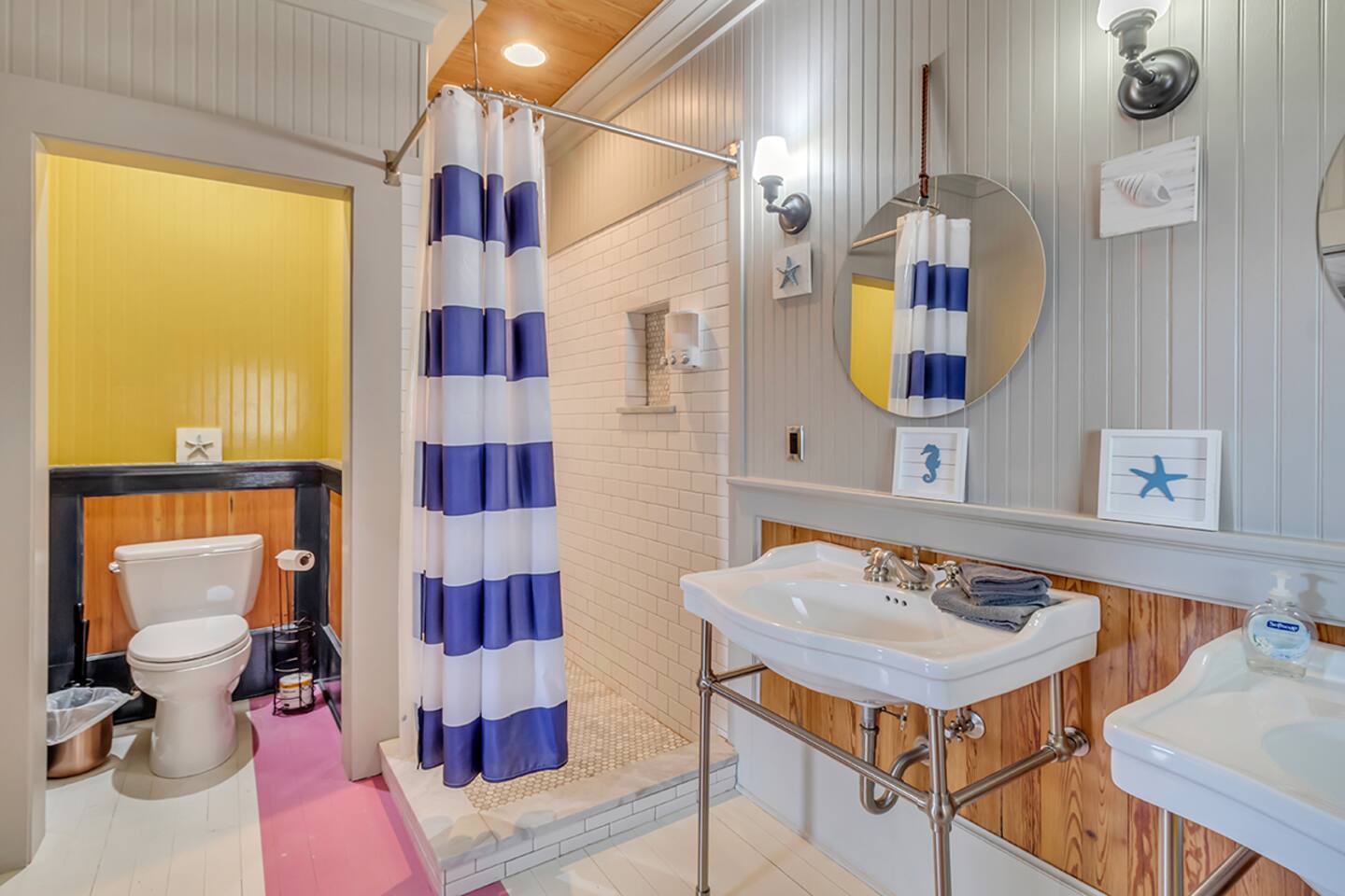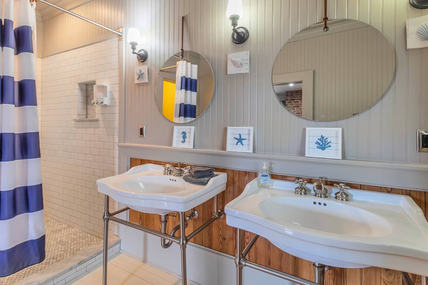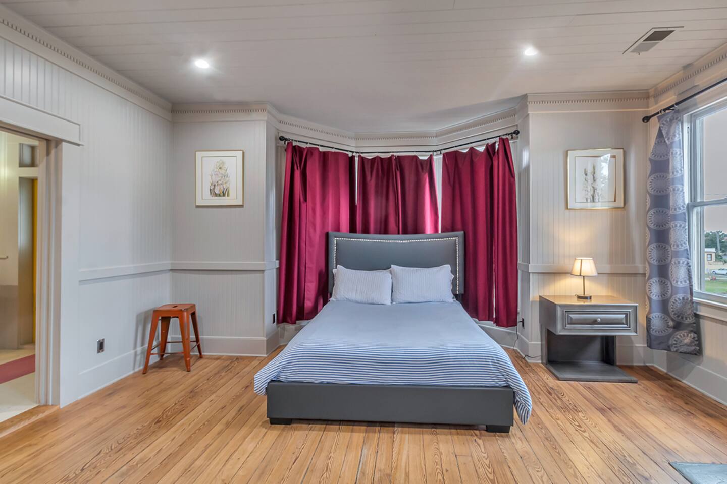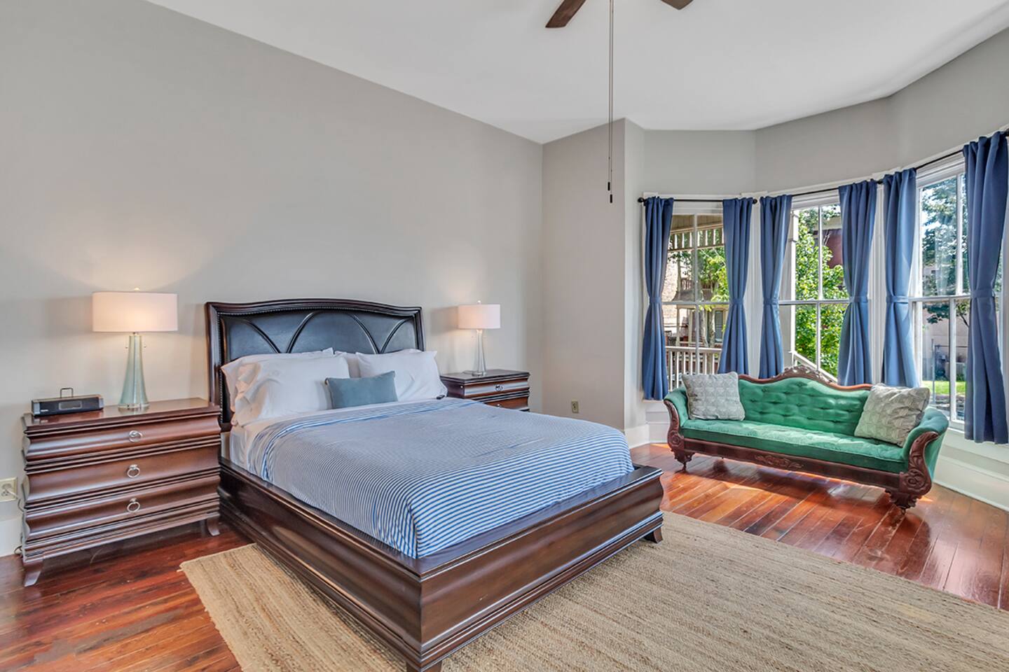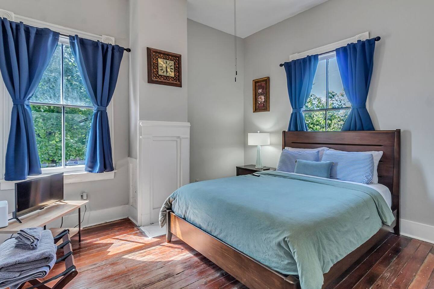Welcome to the left-side townhouse at The Dueling Sisters Inn — a spacious, story-soaked Savannah home built in mid 18th century and once the heart of the city's most legendary sibling rivalry. With four bedrooms, three bathrooms, two kitchens, porches on both levels, and a private courtyard, this entire home is yours — the perfect setup for group getaways, wedding weekends, family retreats, or girls' trips filled with porch wine and laughter. The home was originally gifted by a wealthy cotton merchant to his twin daughters, Mildred and Myrle. Rather than choose a favorite, he built them two identical townhouses, side by side, so neither could claim the better half. Mildred, the older by three minutes, was known for her quiet routines, impressive baking skills, and merciless judgments — all served with a side of tea and rose garden pride. Myrle, who claimed the left side of the house, was the spirited sister — known for her porch parties, champagne habits, and scandalous serenades drifting out into the night air. Today, guests staying on the left side still feel echoes of Myrle’s warmth and flair. The home now consists of two fully separate floors, each with its own entrance, bedrooms, bathrooms, kitchen, and living spaces — ideal for groups who want to be together but still enjoy privacy and flexibility. Upstairs, you'll find two queen bedrooms, each with its own private bathroom, a full kitchen, a cozy living room, and a lovely front porch perfect for morning coffee or late-night toasts. Downstairs offers two more queen bedrooms, a full bathroom, a second kitchen and dining area, a screened-in front porch, and direct access to the shared fenced courtyard, where laughter still seems to linger. The home features original hardwood floors, vintage details, central air and heat, fast Wi-Fi, and flat screen TVs and living space. It’s not new or fancy — it’s historic and full of character. You may notice a creaky floorboard or a slightly stubborn door, but that’s all part of the charm. It’s clean, comfortable, and full of Southern soul. Some guests swear Myrle still visits — a flicker of light here, a missing sock there, or the faintest trace of gardenia and gin. We make no promises… but we do suggest keeping her happy with good company and a little something left on the porch. Your stay is cared for by Miss Stacy, our beloved housekeeper and part-time ghost negotiator. She’s been with us for years and takes great pride in keeping the home tidy and welcoming — despite Myrle’s occasional pranks. She may stop by to restock supplies, but otherwise, you'll have full privacy and space to enjoy. The home is located just two blocks from Forsyth Park, on a quiet, oak-shaded street in Savannah’s Historic District. You’re within easy walking distance to coffee shops, boutiques, brunch spots, and some of the city’s best bars and historic squares. Whether you're looking to explore the sights or simply relax with your group in a place that feels like a true Savannah storybook, this is your home base. Stay where the wild sister once lived, where secrets were shared over champagne, and where porches still invite long, easy conversations. Come for the space, stay for the soul — and maybe, just maybe, feel the sisters watching with a smile.