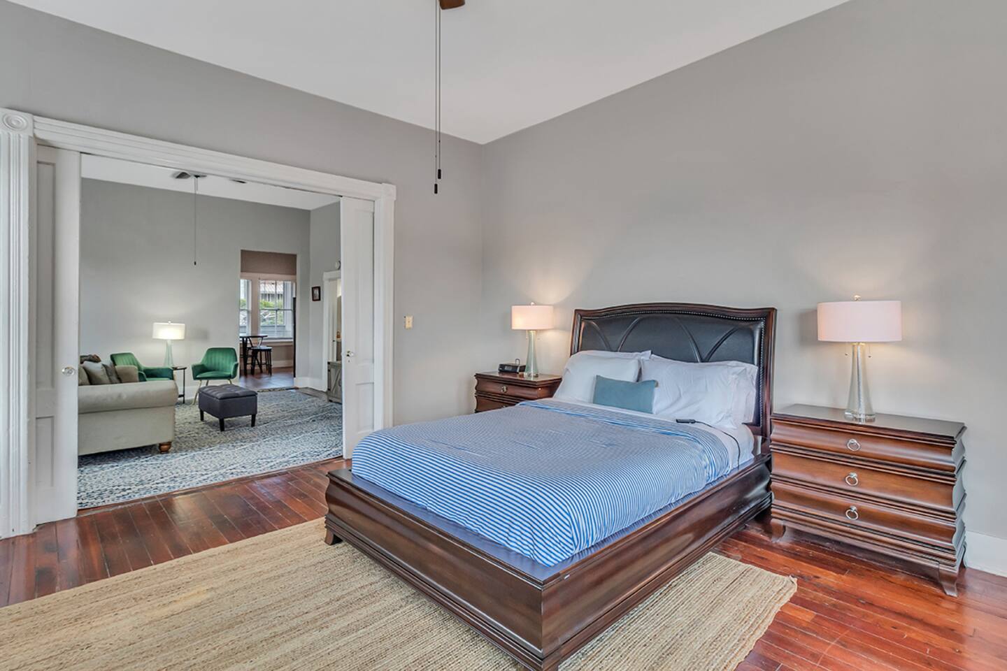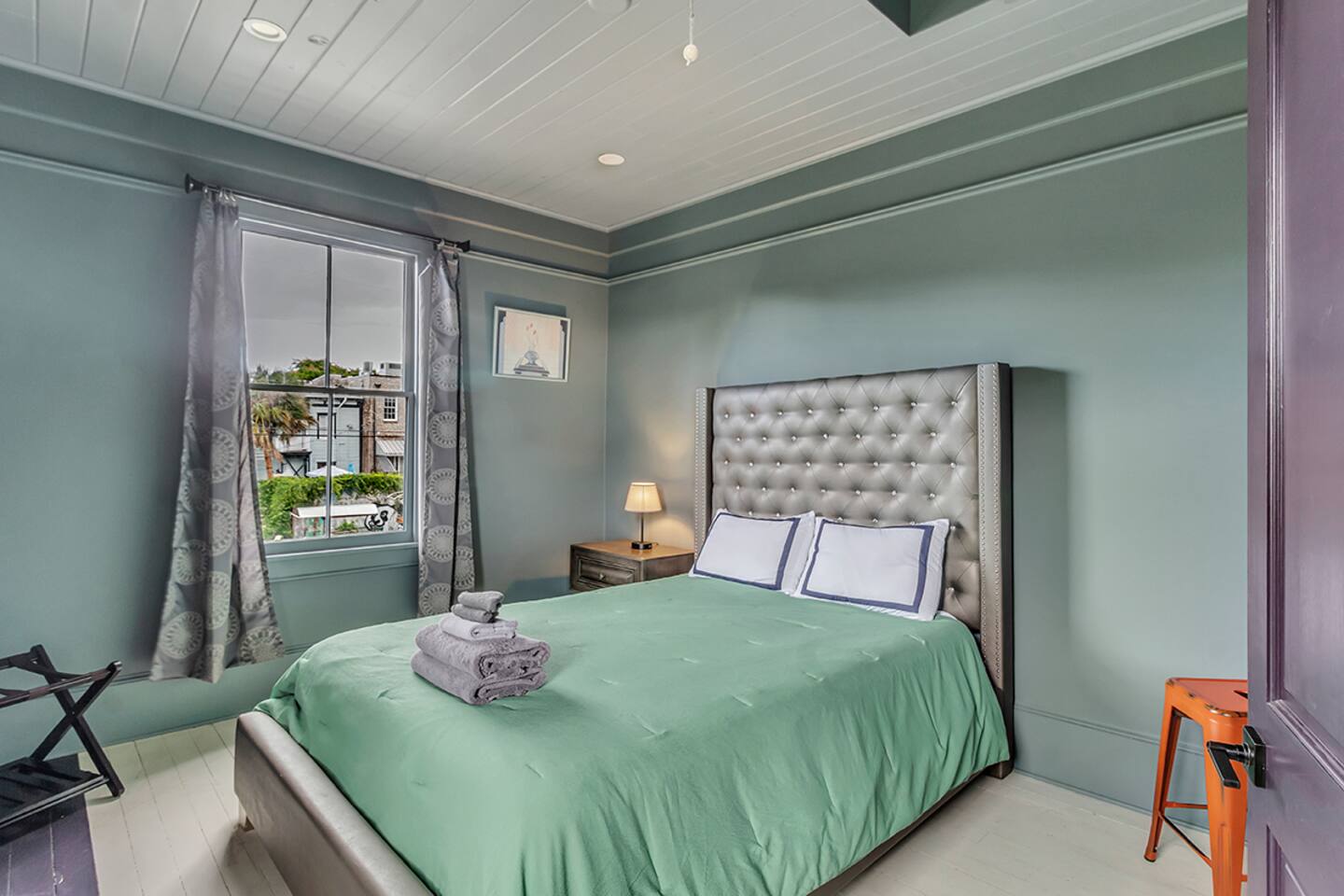 Guests have private access to the entire left-side townhouse, including both upper and lower floors. Each level has its own entrance, two bedrooms, a full kitchen, living area, and bathrooms — perfect for groups who want to stay together with room to spread out. You’ll also enjoy access to the screened-in front porch, upper balcony, and the shared courtyard, where stories, secrets, and more than a few champagne toasts have echoed over the years. Free street parking is typically available just outside the home. You'll have the place to yourselves, with no shared interior spaces.